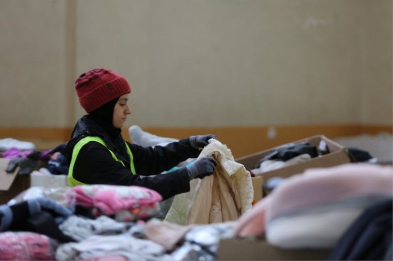 Tırlarla ve diğer araçlarla lojistik merkezine gelen kuru gıda, bakliyat, giyim, battaniye, yorgan ve ısıtıcı gibi malzemeler Büyükşehir personelinin yanı sıra bölgede görev yapan asker ve polis gibi güvenlik güçlerinin yardımıyla ayrı ayrı tasnif ediliyor. Lojistik merkezinde görev yapan personel yardım ve dağıtımların Ramazan kolisi şeklinde olmasının dağıtımları kolaylaştırdığını ve aileler tarafından da tercih edildiğini ifade ediyor. Lojistik merkezine kendileri gelen aileler veya depremzedeler de merkezin içinde istedikleri malzemeleri seçerek alabiliyor.