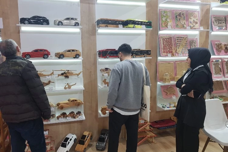 “Anatoya” standında en dikkati çeken ürünler ise ahşaptan yontma çita heykeli, Togg ve Atak Helikopteri oldu.