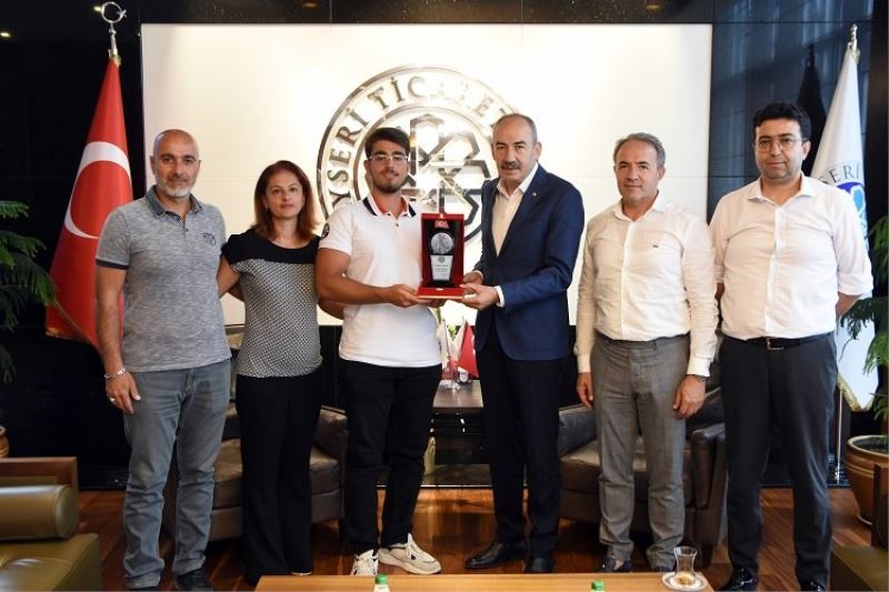 Başkan Gülsoy, ziyaretin sonunda YKS Sayısal Türkiye Birincisi Bahadır Selim Bakla’ya plaket ve çeşitli hediyeler verdi.