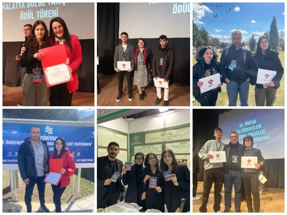 TOBB Kız Anadolu İmam Hatip Lisesi'nden Esra Uslu, Ecrin Arık ve Fatma Gül Badem'in "BET-TÜS" projesi Coğrafya alanında bölge ikincisi olurken, Besni Şehit Eren Kupal MTAL'den Selin Kiraz'ın "Kahramanmaraş Depremlerini Yaşayan Lise öğrencilerinin Deprem Kavramına Yönelik Metaforik Algıları" projesi Psikoloji alanında bölge ikincilik ödülüne layık görüldü.