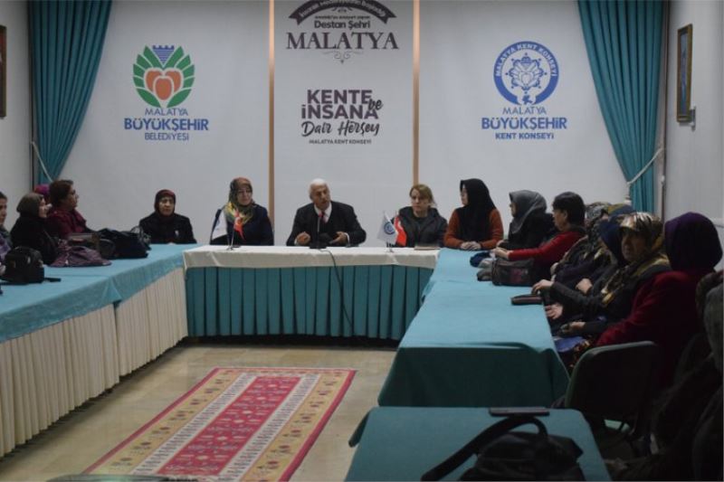 MALATYA (İGFA) - Malatya Kent Konseyi Toplantı Salonu’nda düzenlenen programa konferanslarını sunmak üzere Malatya Kent Konseyi Genel Sekreteri Av. Abdulkadir Artan ve Kent Konseyi Kadın Meclisi Başkanı Saliha Bulut, kadın meclisi üyeleri katıldı.