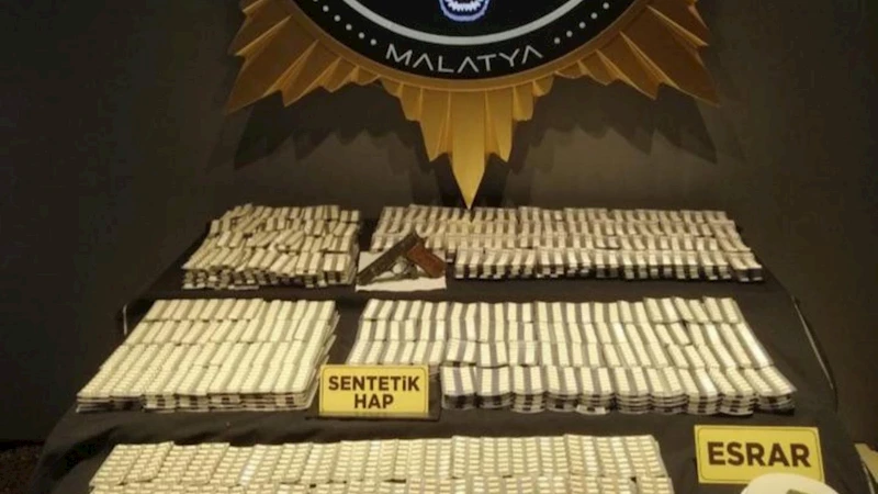 Malatya Narkotik Suçlarla Mücadele Şube Müdürlüğü ekipleri tarafından gerçekleştirilen başarılı operasyon sonucunda önemli miktarda sentetik ecza hap, esrar maddesi, hassas terazi ve ruhsatsız tabanca ele geçirildi.