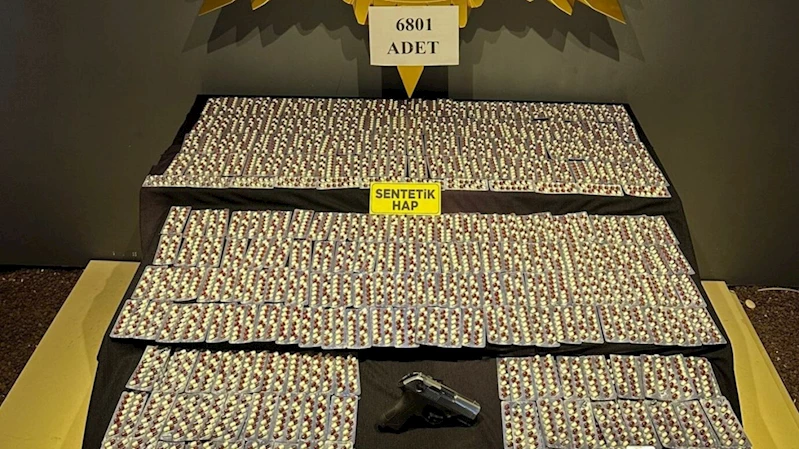 Narkotik Suçlarla Mücadele Şube Müdürlüğü ekiplerince şehirde 5 farklı adrese yapılan operasyonlar neticesinde yapılan aramalarda 6801 adet sentetik hap ve 1 adet ruhsatsız tabanca ele geçirildi. Gözaltına alınan 5 şüpheli emniyetteki işlemlerinin ardından adliyeye sevk edildi. Adli makamlarca 4 şüpheli tutuklanırken 1 şüpheli adli kontrol şartıyla serbest bırakıldı.