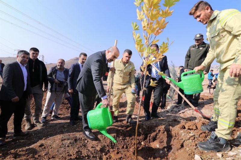 Türkiye genelinde bin 23 noktada "Türkiye Yüzyılına Nefes Olmak" sloganıyla eş zamanlı başlatılan fidan dikme programlarının Mardin ayağında 9 lokasyonda 23 bin 700 fidan dikilecek.
