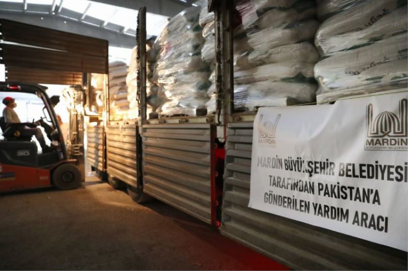 Mardin Valiliği koordinesinde yürütülen yardım kampanyasında toplanan un ve gıda malzemeleri taşıyan insani yardım tırları, Muson yağmurları dolayısıyla sel afeti yaşanan dost ve kardeş ülke Pakistan’a gönderilmek üzere Van iline yola çıktı.