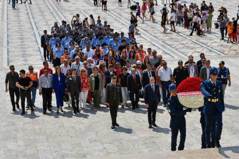 Gazi Mustafa Kemal Atatürk’ün mozolesine çelenk konulmasıyla başlayan anma töreninde saygı duruşunda bulunulurken, duygu dolu anlar da yaşandı.