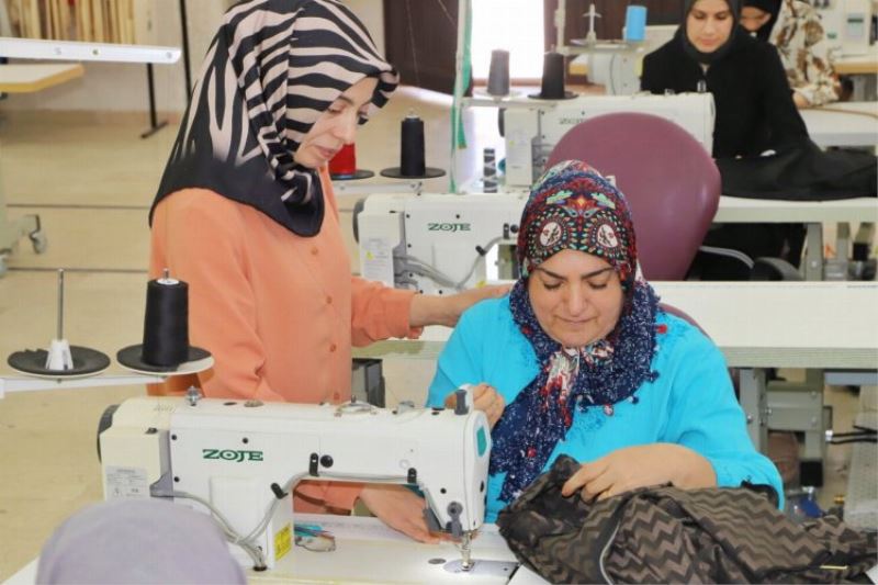 Mardin Büyükşehir Belediyesi Mesleki Eğitim Merkezi dikiş atölyesinde yetiştirilen kursiyer kadınlar, meslek sahibi oluyor.