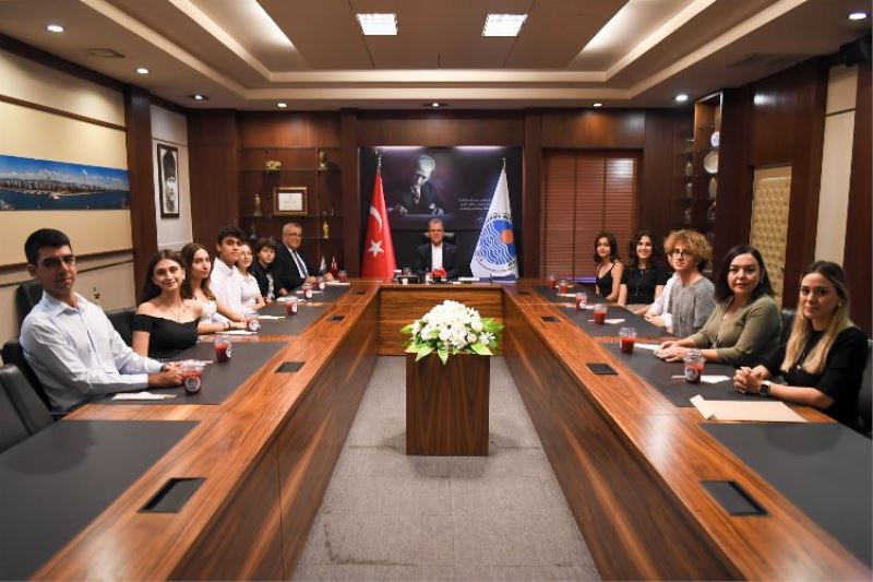 Mersin Büyükşehir Belediyesi’nin ‘Kardeş Şehirler Öğrenci Değişim Programı’ ile 23 Temmuz-7 Ağustos tarihleri arasında Büyükşehir Belediyesi’nin kardeş kenti Almanya’nın Oberhausen kentine giden 14-18 yaş aralığındaki Mersinli öğrenciler, Büyükşehir Belediye Başkanı Vahap Seçer’i ziyaret etti.