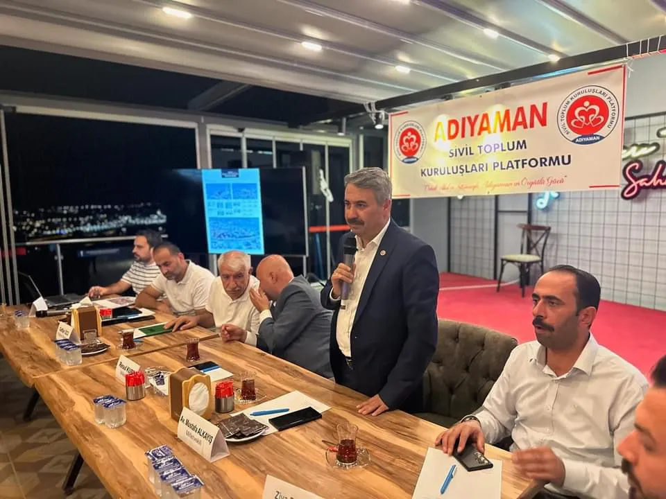 Ak Parti Adıyaman Milletvekili Avukat Mustafa ALKAYIŞ, Adıyaman Sivil Toplum Kuruluşları Platformu’nun öncülüğünde Perre Uygulama Oteli’nde düzenlenen Ağustos ayı toplantısına katıldı. Adıyaman Meydan Projesi gündemiyle düzenlenen etkinliğe AK Parti Adıyaman Milletvekili ALKAYIŞ’ın yanı sıra AK Parti Adıyaman Milletvekili Resul KURT, İl Başkanı Bülent KABLAN, Merkez İlçe Başkanı Ziya BAŞARAN, Çevre ve Şehircilik İl Müdürü Faysal ERGEZEN ve çok sayıda sivil toplum kuruluşunun başkanları katıldılar.