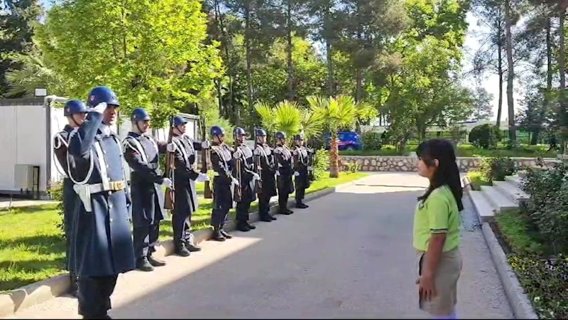 İl Jandarma Komutanı Jandarma Albay Hikmet Uz'un makamına, bu özel gün için seçilen Menderes İlkokulu öğrencisi minik Ada Alagöz, temsili olarak oturdu.