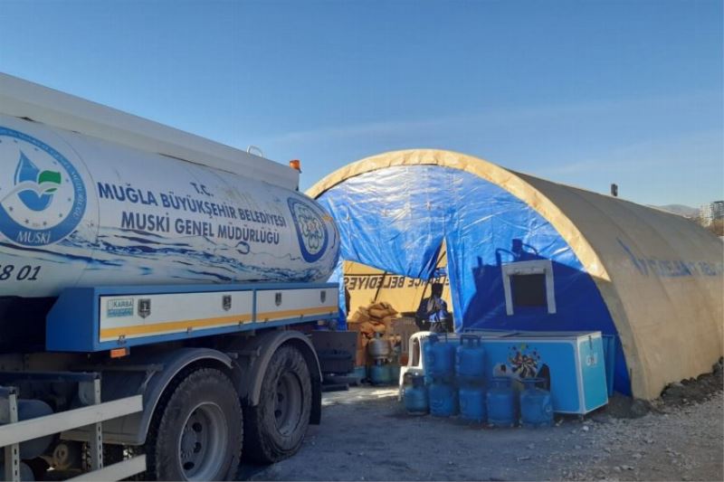 Muğla Büyükşehir Belediyesi MUSKİ ekipleri deprem bölgesi Malatya’da kurulan çadır kentlere ve yemekhanelere içme suyu taşıyarak vatandaşların su ihtiyacını karşılıyor.