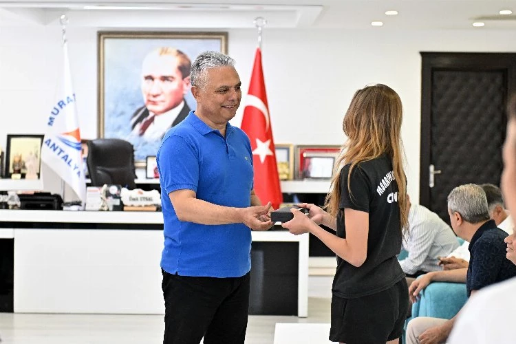 Muratpaşa Belediyespor’un milli takıma seçilen 15 yaşındaki cimnastikçisi İrem Sırcan, Muratpaşa Belediye Başkanı Ümit Uysal’ı ziyaret etti.