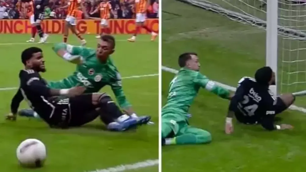 Fernando Muslera, Valentin Rosier'in şut için hareketlenip kale direğine doğru kaydığı bir pozisyonda rakibinin direğe çarpmasını onu iterek engelliyor. Uruguaylı kaleci bu sayede Valentin Rosier'in sakatlanmasının önüne geçiyor.
