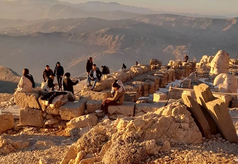 Kasım ayındaki soğuğa aldırış etmeyen yerli ve yabancı turist kafileleri 2206 metre yüksekte olan Nemrut Dağı'na tırmandı. Nemrut Dağı'na tırmanan turistler, bulutlu ve sisli havanın eşliğinde Pers ve Hellen sanatını bir arada izledi. Soğuk havaya aldırış etmeden dev heykellerin yanına tırmanan turistler, hatıra fotoğrafı çekmeyi ihmal etmediler.