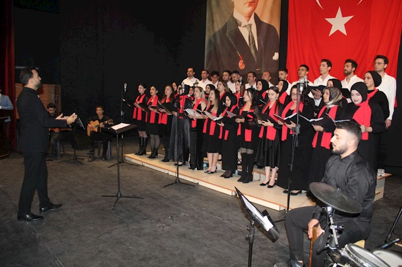 Şef Mahir Aslan yönetiminde ilçedeki öğretmenlerden oluşan öğretmenler korosu, Türk Halk Müziği’nden oluşan eserleri solo ve koro olarak seslendirerek izleyicisinden büyük beğeni aldı.