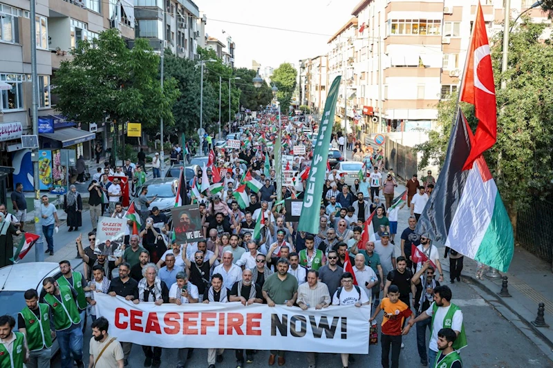 Pendik Marmaray İstasyonu’nda bir araya gelen on binlerce kişi, ellerinde Türk ve Filistin bayrakları ile yürüyüşe geçti. “Katil İsrail Filistin’den defol”, “Katil İsrail, işbirlikçi Amerika”, “Nehirden denize özgür Filistin”, “Filistin halkı yalnız değildir” sloganları atıldı, tekbirler getirildi.