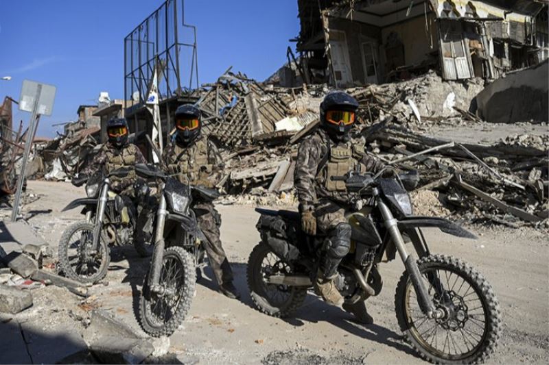 ANKARA (İGFA) - Hatay'da görevlendirilen Emniyet Genel Müdürlüğü Özel Harekat Daire Başkanlığı bünyesindeki Özel Harekat Polisleri, yıkılan binalar nedeniyle kapanan sokaklarda veya araç giremeyen mahallelerde kros motosikletleriyle devriye geziyor.