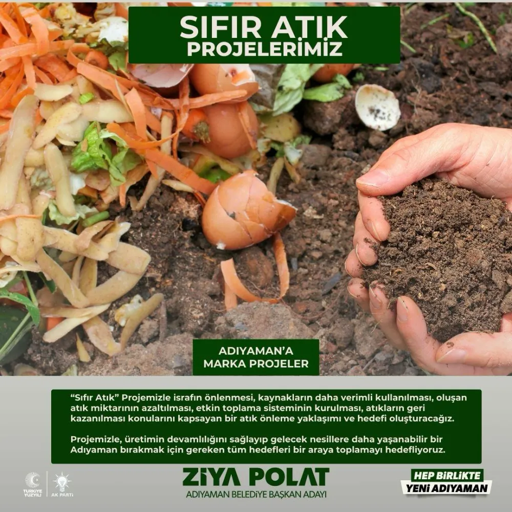 Çevre temizliği ve yeşil alanların artırılması amacıyla uygulayacağımız Temiz Adıyaman Projemiz, şehrimizin estetik görünümünü iyileştirecek ve çevre bilincinin oluşmasına katkı sağlayacak. Çevre Dostu Projelerimizle şehrimizin estetik görünümünü iyileştireceğiz ve çevre bilincinin oluşmasına katkı sağlayacağız. Adıyaman’ımıza şimdiden hayırlı olsun.”