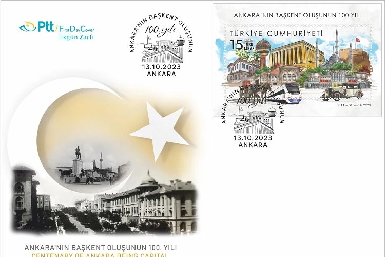 PTT AŞ tarafından “Ankara’nın Başkent Oluşunun 100. Yılı” konulu anma pulu ve ilkgün zarfı 13 Ekim 2023 tarihinde tedavüle sunuldu.