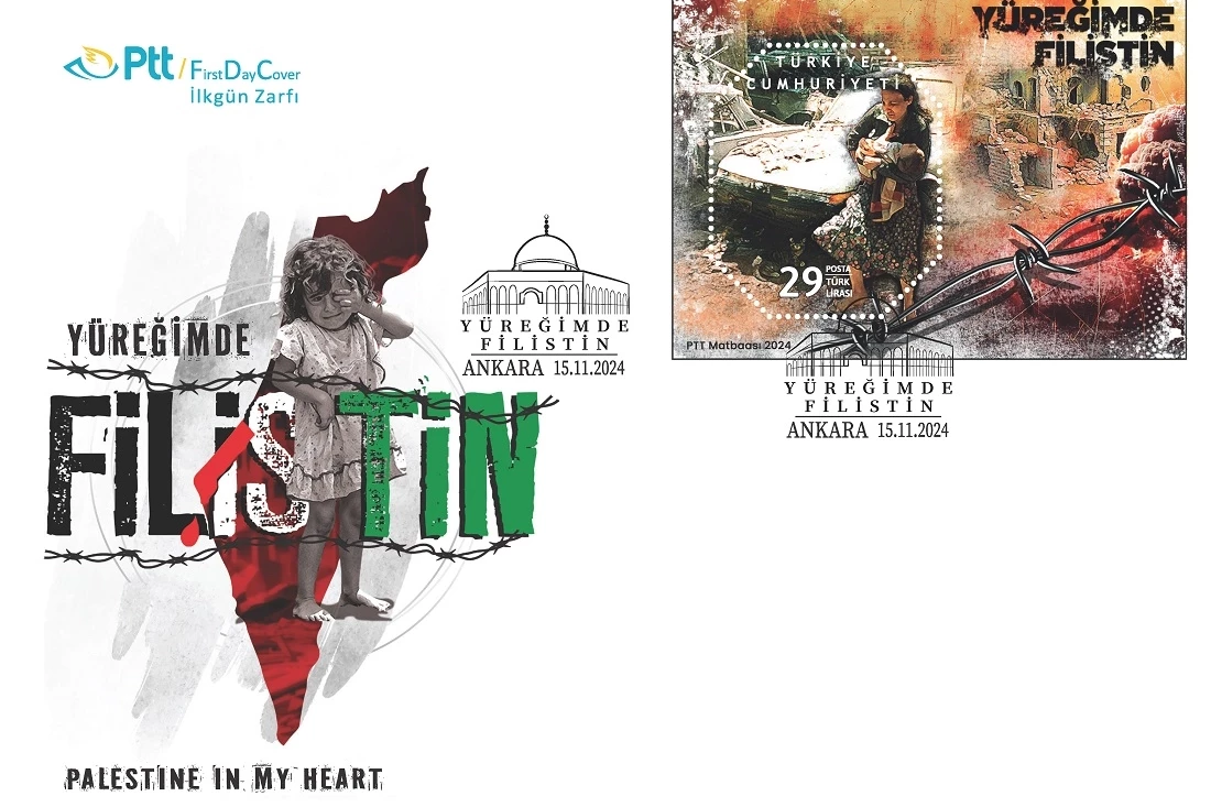 PTT AŞ tarafından “Yüreğimde Filistin” konulu anma pulu ve ilkgün zarfı 15 Kasım 2024 tarihinde tedavüle sunuldu.