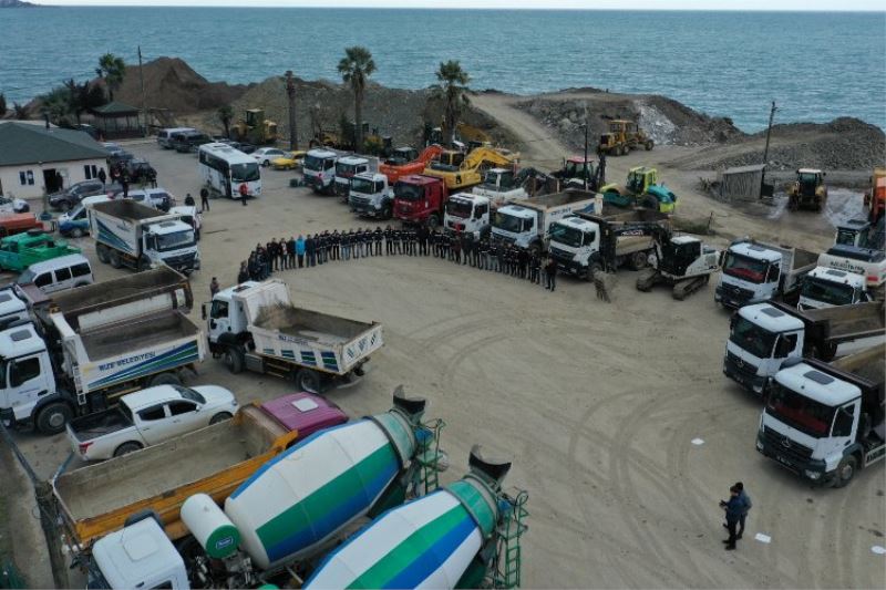 Rize Belediyesi merkez üssü Kahramanmaraş olan deprem bölgesine 5 ekskavatör, 6 damperli kamyon, 2 adet çekicili ve vinçli 4x4 kamyonet, 1 otobüs, 5 taşıyıcı kamyon, 1 adet çok amaçlı itfaiye kurtarma aracı, 1 adet temizlik kamyonu, mühendis, itfaiyeci, operatör, bakım, onarım ve teknik personelden oluşan 41 kişilik ekibini yola çıkardı.