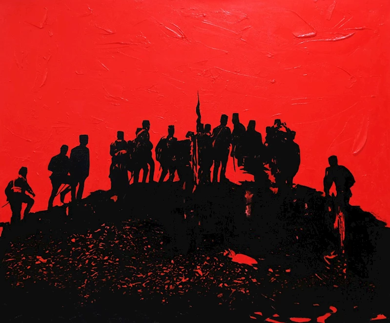 “Kuvayi Milliye Destanı ile oluşturduğum Paşalar Serisi, savaşlardan yorgun düşen bir ulusun, belge ve resimlerinden oluşan kanlı dirilişinin öyküsüdür. Siyah-beyaz bir fotoğraf estetiği ile işlenen yapıt serisine dahil olan tek rengin şiddetli bir kırmızı olması üzerinde durduk. Bu noktada, kırmızının siyah ve beyaz ile yarattığı kontrasta bağlı grafik etkinin dışında sembolik anlamlar taşıdığı vurgulanabilir.