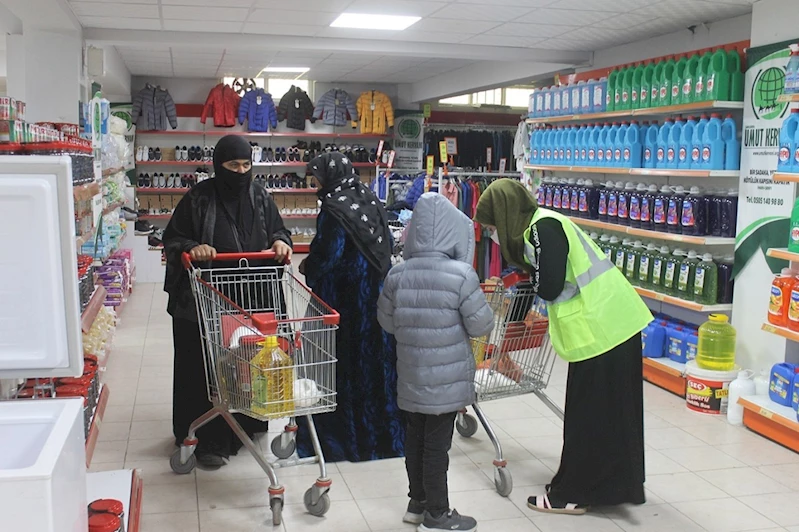 Umut Kervanı Temsilciliğine gelen ihtiyaç sahipleri, Umut Marketten ihtiyacı olan gıda ve temizlik malzemesini aldı.