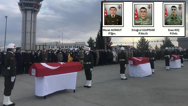 Tören sonrası şehitlerden Alyakut'un cenazesi Kahramanmaraş'a, Koç'un İstanbul'a, Ulupınar'ınki ise Mersin'e uçakla uğurlandı.