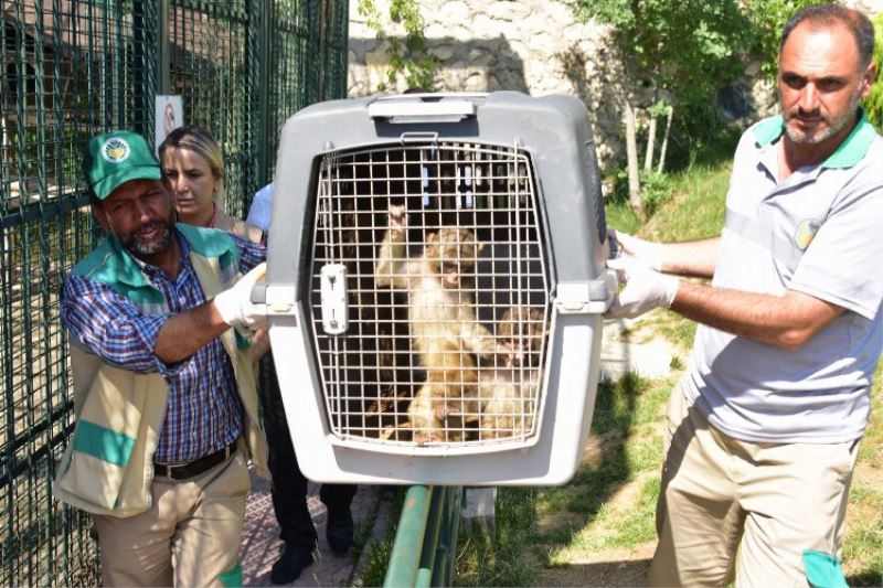 Gürbulak Sınır Kapısı'nda yakalanan üç makak maymunu Malatya'da hayvanat bahçesine getirildi.