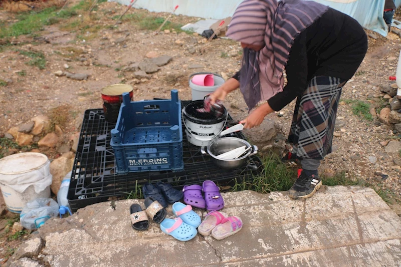 ADIYAMAN (PHA) - Kahramanmaraş'ta merkezli meydana gelen 7.7 ve 7.6 şiddetindeki 6 Şubat depremlerinin üzerinden on aya yakın süre geçmesine rağmen Sivritaş ailesi 9 aydır Adıyaman merkezde, bataklığa dönen bir tarla ortasındaki çadırda yaşıyor.