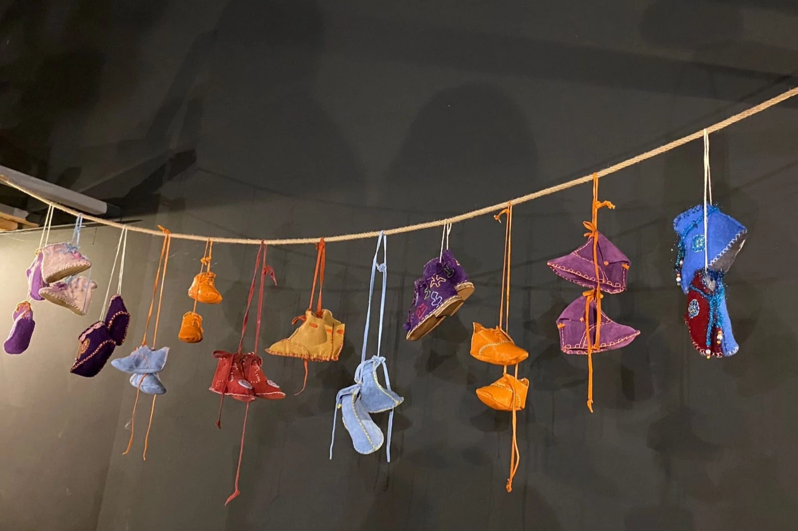 Ayakkabı kalıbı, çekiç, biz gibi el aletleri kullanılarak doğal keçe ve deri malzemelerden üretilen ayakkabılar, çift iğne tekniğiyle dikilmiş ve pamuk iplikleri balmumu ile güçlendirilmiş.