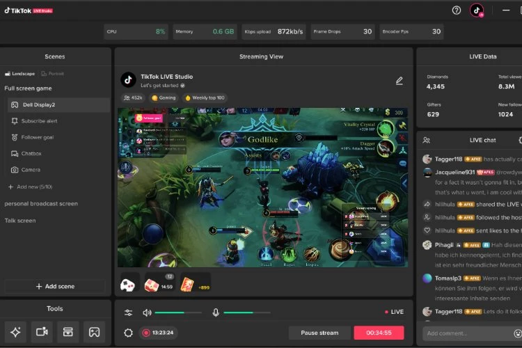 TikTok kullanıcıları, LIVE Studio'yu kullanarak aynı anda en fazla 10 sahneyi özelleştirebiliyor. Her sahne, farklı kaynaklardan video ve ses çekmeyi mümkün kılıyor. Bu da kullanıcılara Elgato capture kartı gibi cihazlardan veya Steam gibi programlardan alınan içerikleri canlı olarak TikTok üzerinde paylaşma olanağı tanıyor.