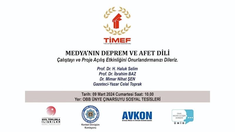 Genel Başkanlığını Şakir Gürel'in yaptığı Tüm İletişim ve Medya Federasyonu (TİMEF) tarafından deprem ve afetlerin yaşandığı dönemlerde halkın bilinçlendirilmesinde en önemli görevi üstlenen medya mensuplarının haber, köşe yazısı ve yorumlarında uygulaması gereken ifade ve sunum yöntemi konularında bilgilendirilmesi amacıyla "Medya'nın Deprem ve Afet Dili Çalıştayı" düzenleniyor.