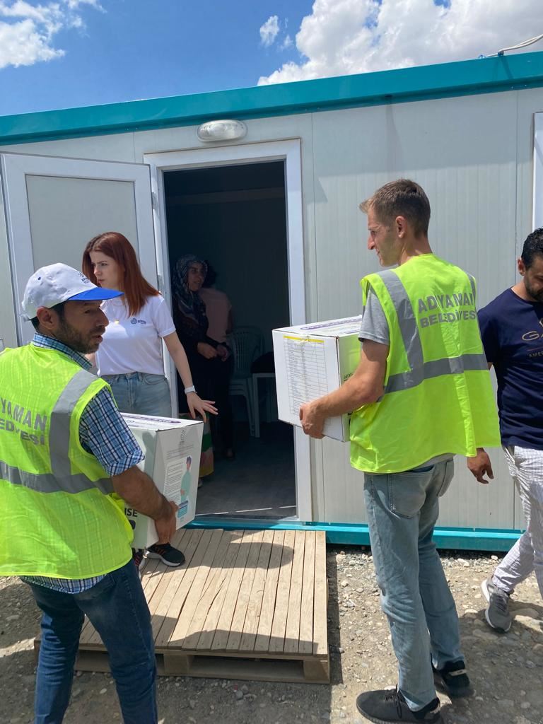 Konuşmaların ardından belediye çalışanları ve dernek sorumluları çadırkentlerde hijyen kolisi dağıtımı gerçekleştirdiler.