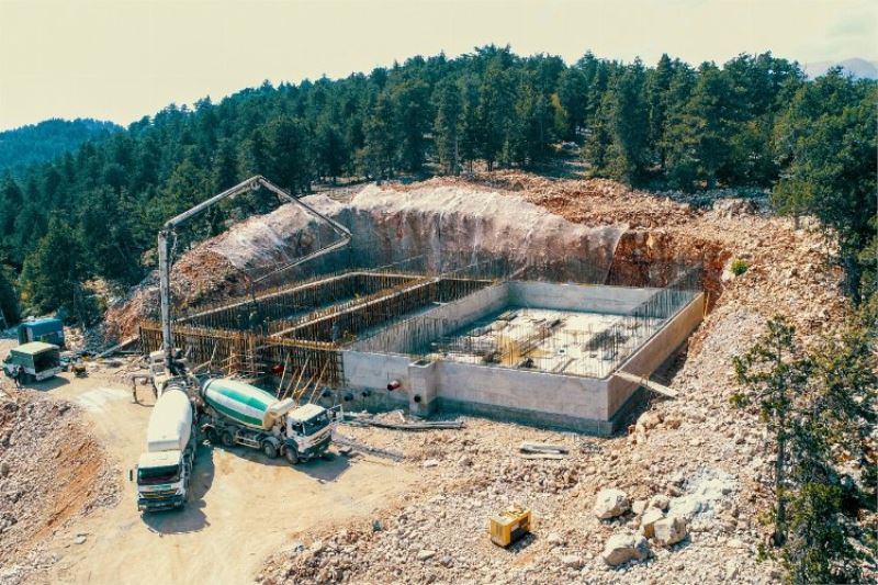 Mersin Büyükşehir Belediyesi Mersin Su ve Kanalizasyon İdaresi (MESKİ) Genel Müdürlüğü, Toroslar İlçesi Gözne, Ayvagediği isale hattı üzeri 5000 metreküp hacimli prizmatik biriktirme su deposu ikmal yapım işine başladı.