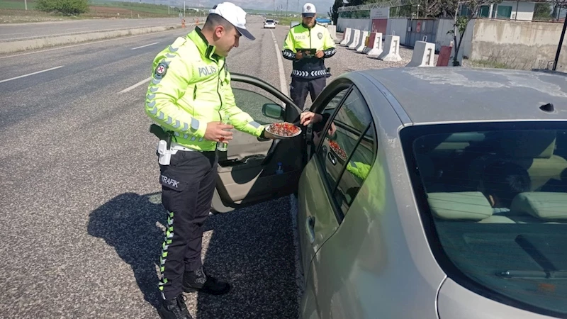 Yapılan uygulama esnasında durdurulan sürücü ve yolcuların bayramlarını kutlayan trafik polisleri, hayırlı yolculuklar diledi. Ayrıca, sürücülere ve yolculara bayram şekeri ikram ederek, vatandaşlarla pozitif bir etkileşim kuruldu.