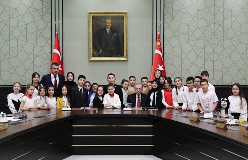 Cumhurbaşkanı Recep Tayyip Erdoğan, 23 Nisan Ulusal Egemenlik ve Çocuk Bayramı dolayısıyla Milli Eğitim Bakanı Yusuf Tekin ve beraberindeki çocukları Cumhurbaşkanlığı Külliyesinde kabul etti. Kabulde konuşan Cumhurbaşkanı Erdoğan, çocukların, 23 Nisan Ulusal Egemenlik ve Çocuk Bayramı’nı kutladı. Türkiye’deki çocuklarla birlikte tüm dünya çocuklarının bayramında, çocukları Cumhurbaşkanlığı’nda misafir etmekten büyük memnuniyet duyduğunu dile getiren Cumhurbaşkanı Erdoğan, tüm dünya çocuklarına sevgilerini iletti.