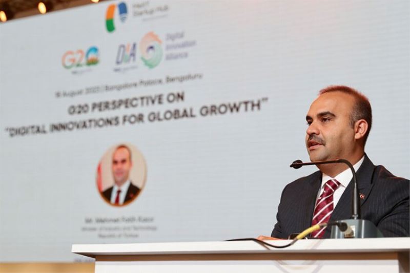 ANKARA (İGFA) - Hindistan'ın ev sahipliğinde, Bangalore kentinde düzenlenen G20 Dijital Ekonomi Bakanlar toplantısına katılan Sanayi ve Teknoloji Bakanı Mehmet Fatih Kacır, program kapsamında G20 üyesi ülkelerin önde gelen start-up'larını ve yatırımcılarını bir araya getiren "Dijital İnovasyon İttifakı Paneli"nde mesajlar verdi