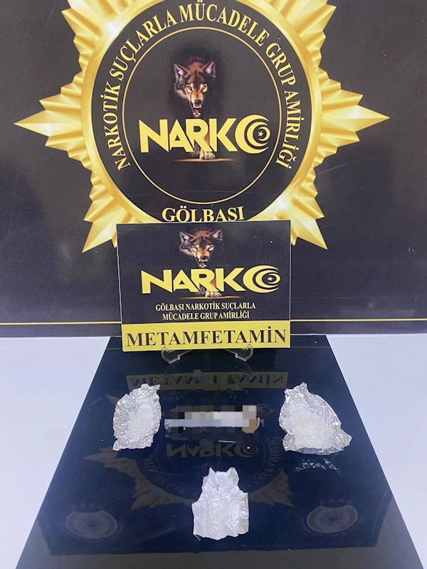 Gölbaşı Cumhuriyet Başsavcılığı tarafından uyuşturucu satıcılarına ve kullananlara yönelik yürütülen soruşturma kapsamında Gölbaşı Narkotik Suçlarla Mücadele Büro Amirliği ekipleri tarafından operasyon düzenlendi. Polis ekiplerinde düzenlenen operasyonda 11.12 gr metamfetamin MADDESİ, 1 uyuşturucu kullanma aparatı ele geçirildi. Uyuşturucu ve aparat muhafaza altına alınırken M.M., İ.K. ve A.T., gözaltına alındı. Gözaltına alınan 3 şüpheli sorgulanmak üzere emniyete götürüldü.