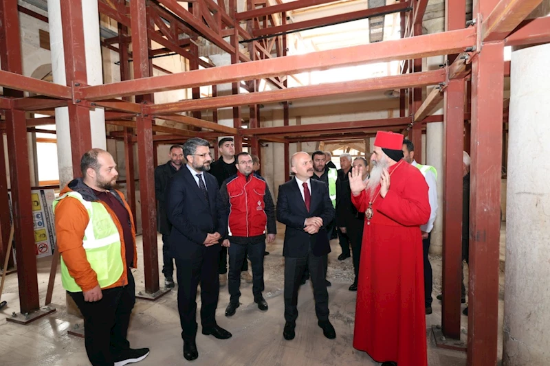 Süryani Kadim Metropolitliğindeki restorasyon çalışmalarını inceleyen Adıyaman Valisi Osman Varol'a İl Kültür ve Turizm Müdürü Abuzer Gelse eşlik etti.