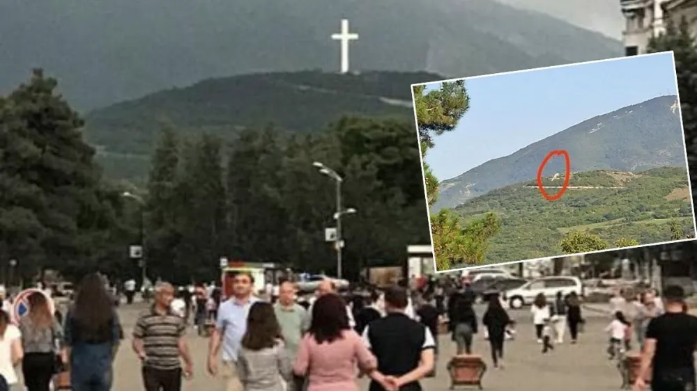 O görüntülerden biri de Hankendi'nde yaşandı. Şehrin en yüksek tepesindeki haç işareti Azerbaycan'ın hakimiyet sonrası kaldırıldı.