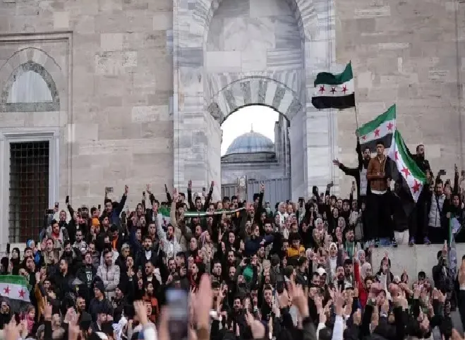 Sabah namazı sonrası Fatih Camii’nde toplanan binlerce Suriyeli, sevinç gösterilerinde bulundu. 7’den 70’e binlerce Suriyeli Fatih Camii’nde Türk ve Suriye bayrakları ile Esad’ın gidişini kutladı.