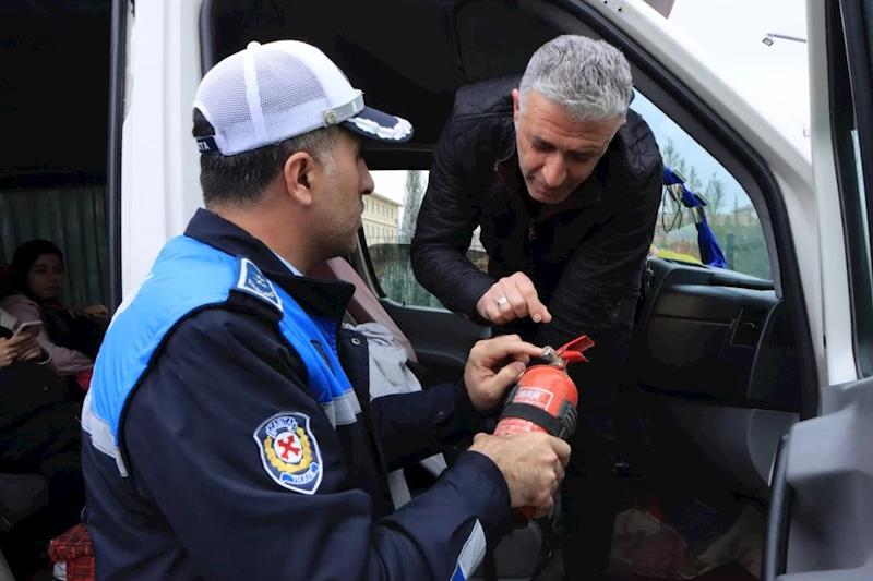 Okul servislerinin denetlendiği çalışmalar kapsamında kapasitesinin üstünde yolcu taşıyan servis sürücüleri uyarıldı. Okul servislerinde ayrıca bulundurulması zorunlu olan alet ve teçhizatlar görevliler tarafından tek tek kontrol edildi.