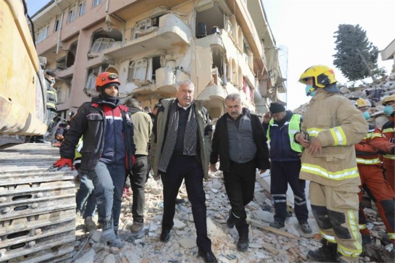 ADANA (İGFA) - Hatay merkez ve ilçelerde incelemelerde bulunan Başkan Zeydan Karalar, Adana’daki çalışmalarını tamamlayarak komşu kente yardıma koşan arama kurtarma ve diğer Büyükşehir ekiplerini de ziyaret etti, kentte özveriyle çalışıp halkın yaralarını sarmaya çalışan herkese teşekkür etti.